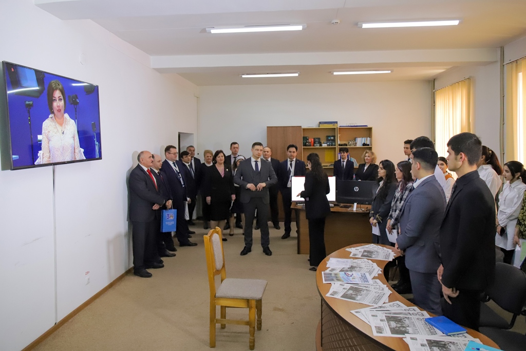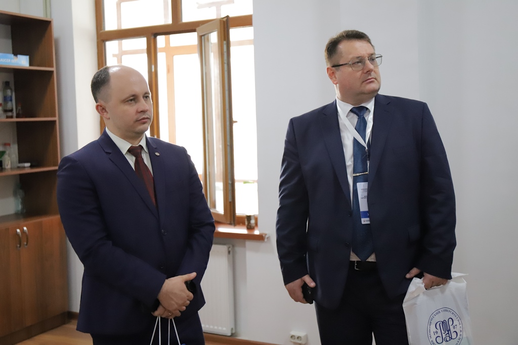 Далее для гостей провели обзорную экскурсию по университету, по основным центрам и лабораториям, среди которых радиолаборатория, учебная ТВ-студия, лаборатория криминалистики, «Русское пространство» и другие.